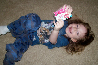 Mama tried to steal the extra one (he had already had one of the same flavor...) but he spoted it, grabed it and I chased him around the house till he laid down on the floor laughing that it was his. Guess I miss out on that one (not that they were for me anyway!)!
